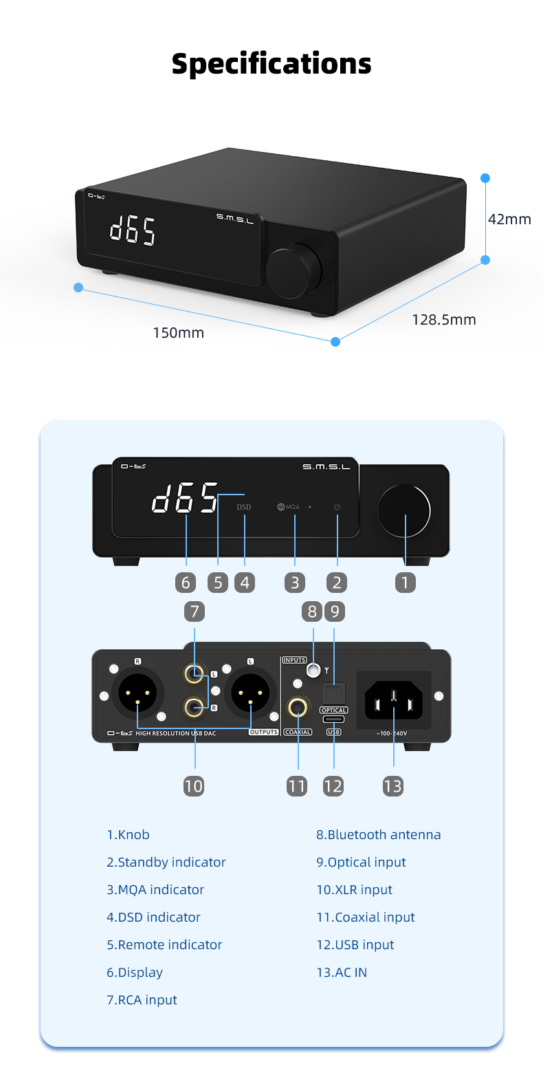 S.M.S.L D6S ES9039Q2M Digital to Analog Convertor (DAC)